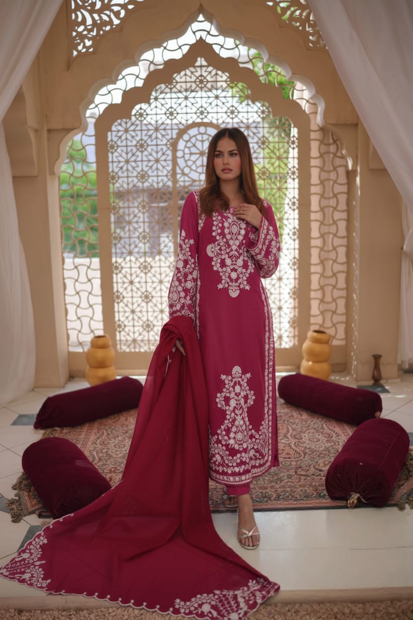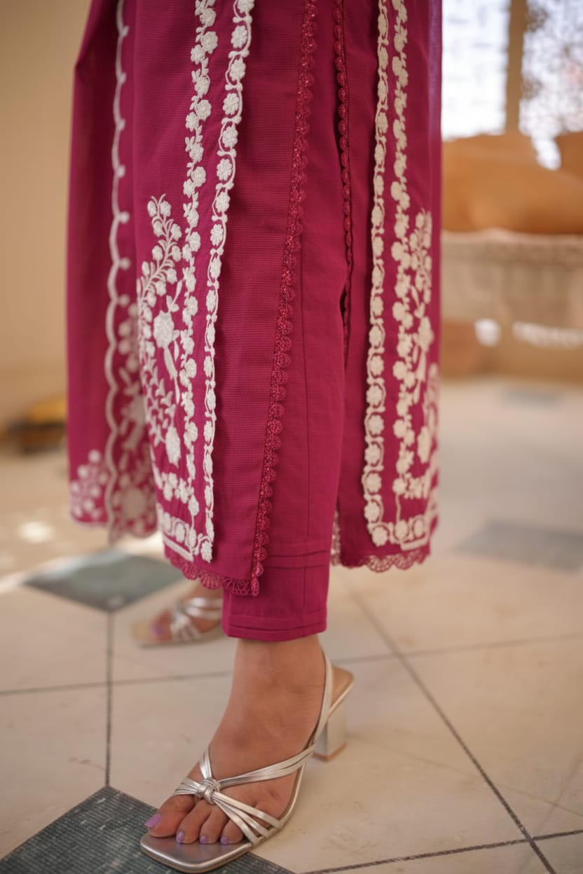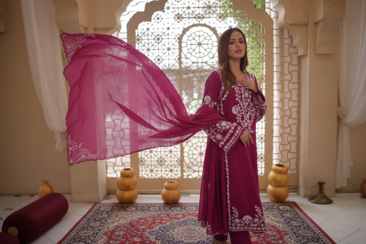 The dupatta like a canvas of dreams with delicate embroidery and stitches in vibrant themes .It drapes with grace like a work of art .A symbol of elegance right from the heart